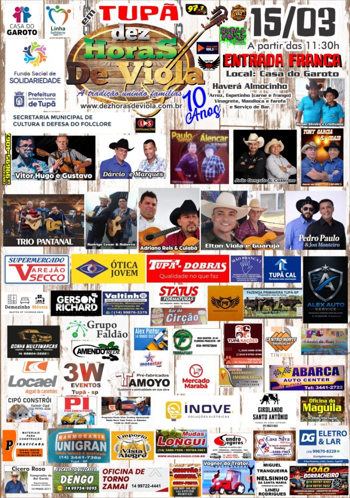 A Casa do Garoto recebe no próximo dia 15 de março o evento “10 Horas de Viola”, promovido pelo Fundo Social de Solidariedade em parceria com a entidade social.