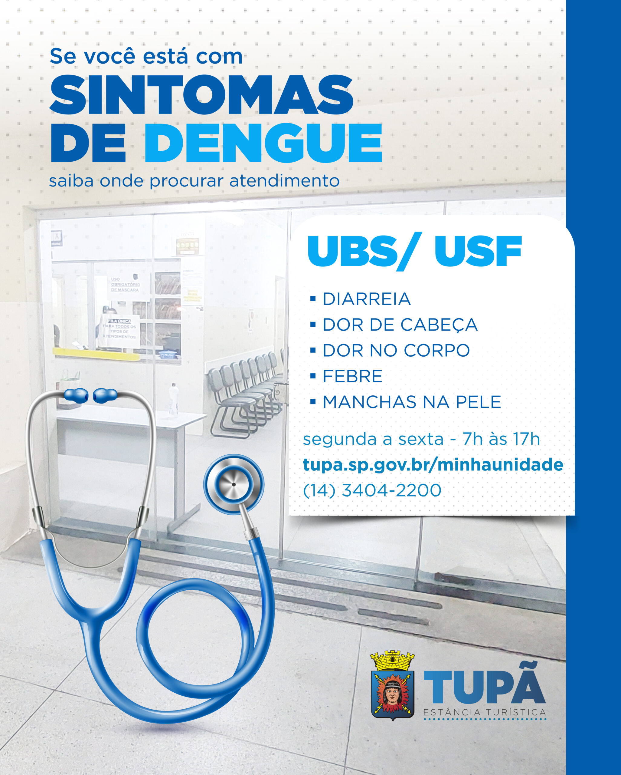 Tupã possui 16 unidades de saúde (UBS/ USF), que funcionam como porta de entrada do SUS para tratamento de diversas doenças, inclusive para infectados pela dengue, transmitida pelo mosquito Aedes Aegypti.