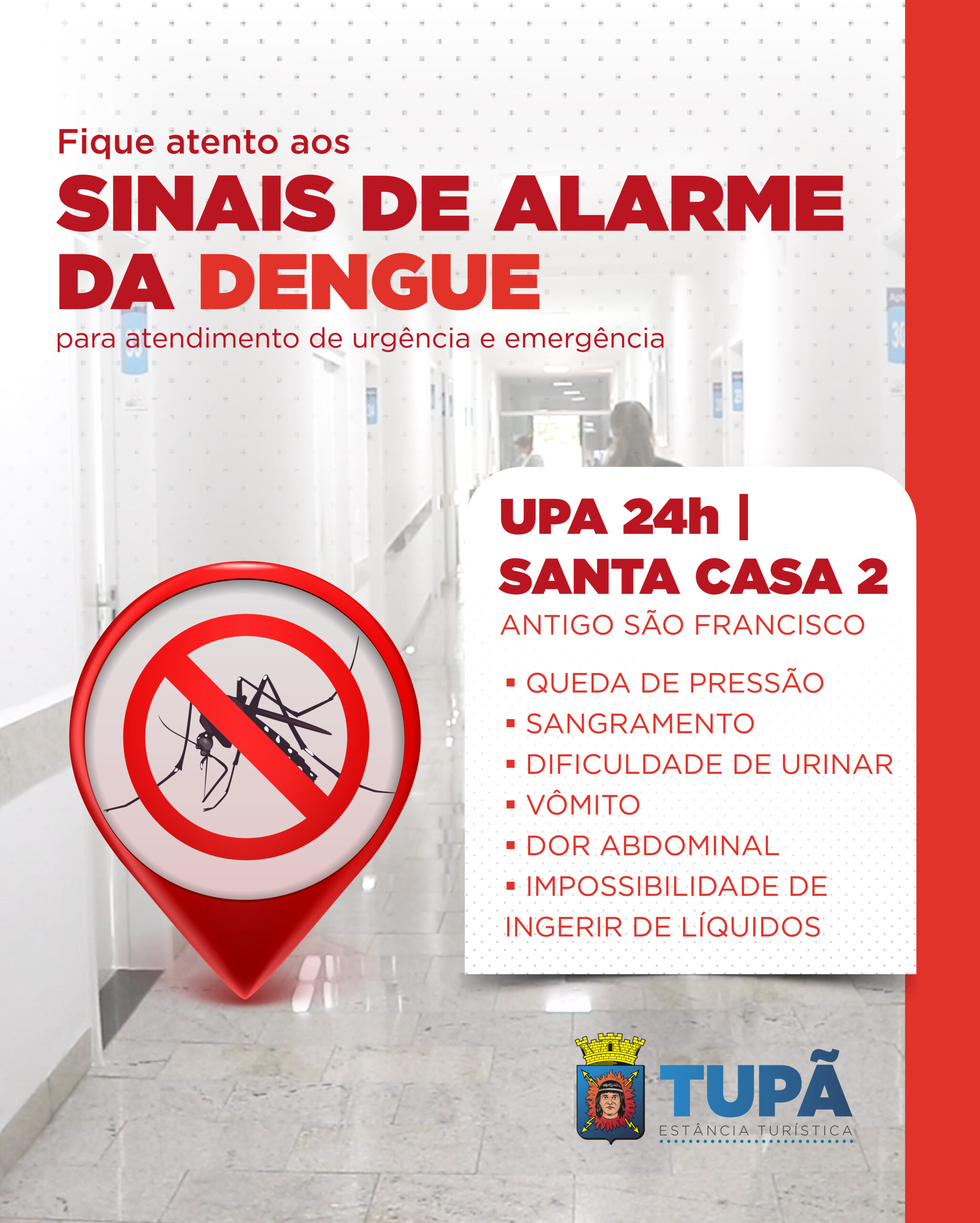 Pacientes com sinais de alarme como: queda de pressão, sangramento ativo, diminuição da quantidade de urina, vômito, dor abdominal, ou impossibilidade de ingerir líquidos, devem se dirigir imediatamente aos serviços de urgência e emergência.